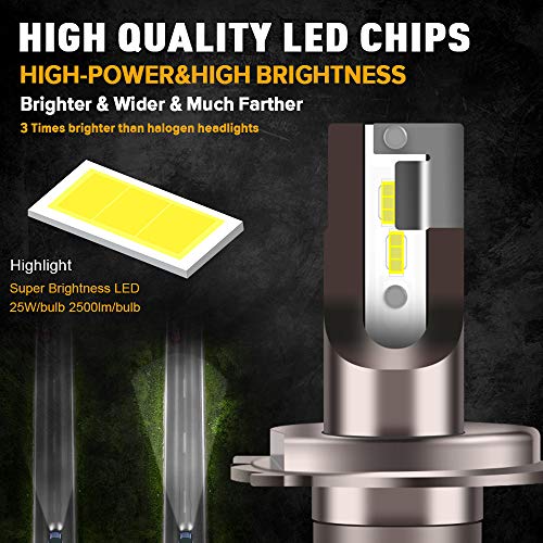 Chemini 2PCS Lampadina per fari a LED H4 Kit di conversione faro LED super luminoso da 50W 5000 lumen 6000K bianco Collega e usa Lampadina abbagliante/anabbagliante