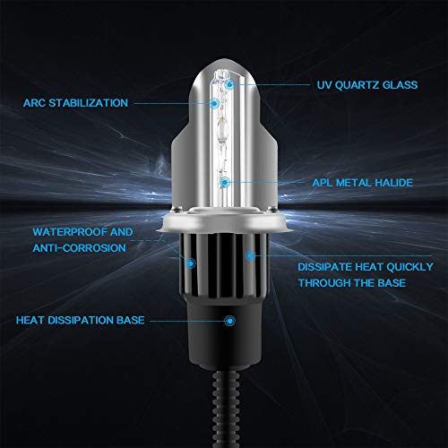 La lampadina allo xeno è realizzata in vetro al quarzo resistente ai raggi UV, gas xeno di alta qualità, alogenuri metallici APL ed elettrodo metallico al tungsteno. Prestazioni superiori e qualità molto elevata.