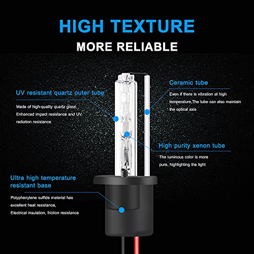 [Luce naturale]: rispetto alle lampade alogene, la luce emessa dalle nostre lampadine allo xeno è più vicina alla luce naturale. La luminosità rimane morbida e non abbagliante, illuminando la strada, rendendoti più sicuro e confortevole durante la guida. Alta qualità e più affidabile, il tubo esterno in quarzo resistente ai raggi UV è realizzato in vetro al quarzo di alta qualità, che ha una maggiore resistenza agli urti e alle radiazioni UV, e il colore luminoso è più puro.