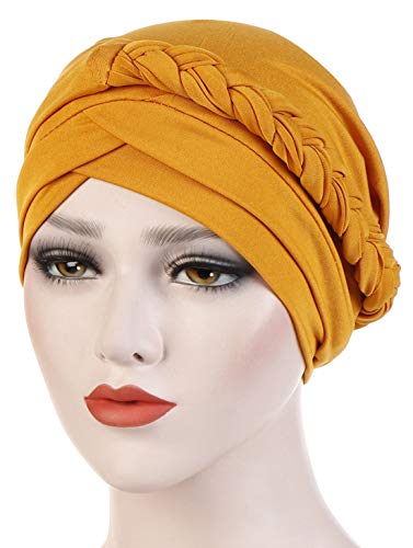 Chemo Cancro Testa Cappello Cap Etnico Boemia Pre-Legato Ritorto Treccia Capelli Copertura Avvolgere Turbante Copricapo, Un giallo zenzero, Taglia unica