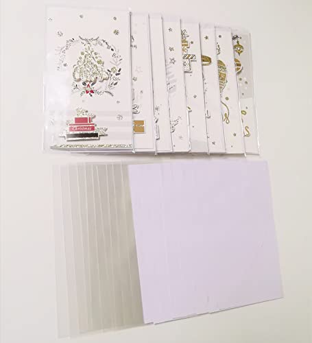 * La dimensione estesa della cartolina di Natale è 24 x 21,5 cm e la dimensione piegata è 21,5 x 12 cm, adatta per le feste. 8 biglietti di Natale stampati a caldo bianchi, inclusi 8 modelli tra cui renne di Natale, albero di Natale, fiocchi di neve, confezione regalo di Natale, campana di Natale, calza di Natale, guanti di Natale, bacche di Natale, ecc.