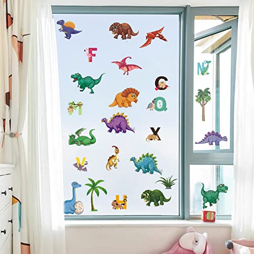 CHENEVER Decalcomanie per finestre riutilizzabili con dinosauri, decalcomanie per finestre autoadesive, adesivi luminosi per regali da camera da letto per ragazzi