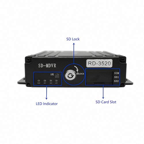 DVR mobile 720P: tecnologia di registrazione senza cuciture. Supporta scheda SD (non inclusa) fino a 128 GB, più conveniente e resistente alle vibrazioni rispetto alla versione del disco rigido. Modalità di compressione, supporto quattro canali 4pin connettore video e audio input, un canale AV connettore video e uscita audio. Telecomando IR.