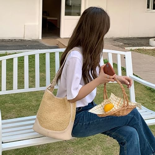 Chengjiexu Borsa di Paglia Borsa A Spalla Intrecciata da Donna Borsa A Spalla Intrecciata Stile Vacanza Borsa A Secchiello Grande capacità Nera