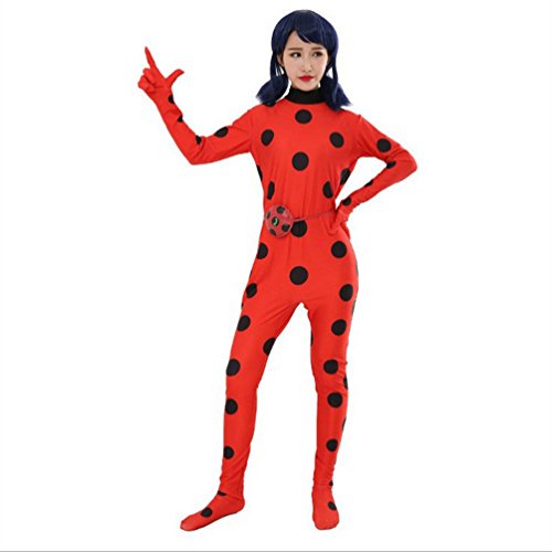 CHENGYANG Animazione Costume Travestimento Halloween Zentai Catsuit Ladybug Cosplay Bodysuit Tight Tuta Rosso S (Bambino)