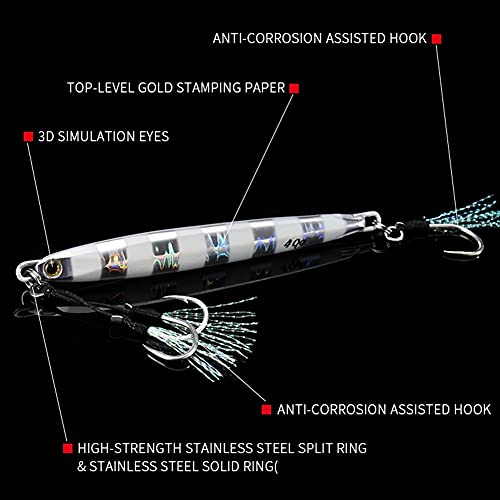 Chenhan Esche da Pesca Lungo Metal Jig Jig Lure Pesca Lent Slow Cast Jigging Spoon 20G 30G 40G 60G Riva Artificiale Metallo Bait Attrezzatura da Mare Esche (Color: Color J, Dimensione: 40g)