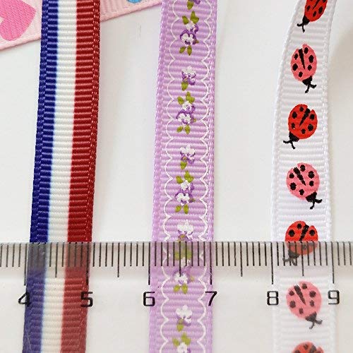 Chenkou Craft 20 Yards - Nastri in grosgrain in colori assortiti, motivo: cuore, fiore, pois, coccinella, uccello, ancora, farfalla, 10 mm
