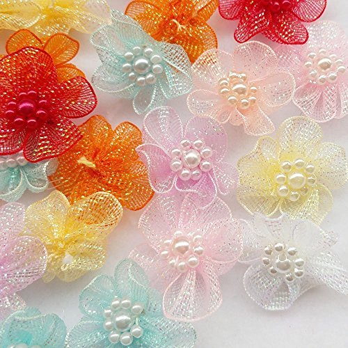 Chenkou nastro di tessuto artigianale fiori archi strass Appliques artigianali Bulk A445 25PCS Organza Flower(a0020)