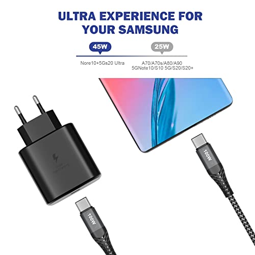 CHENLENIC USB-C Super Fast Charger 45W European Standard Plug Power Supply Adapter with One USB-C to USB C Male to Male 100w 5A Charge Cable (black)