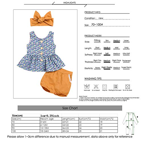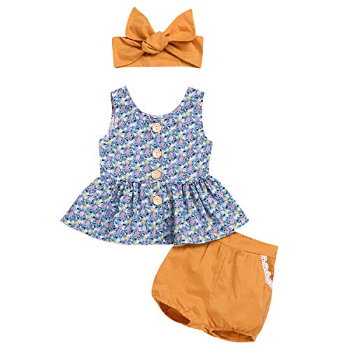 Chennie Top Gilet Floreale Senza Maniche Bambina + Pantaloncini + Fascia Abiti Abiti Set