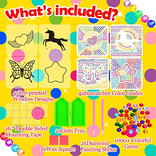 【Kit per Pittura con Diamanti per Bambini】 Il kit include penna per pittura con diamanti, disegni per finestre prestampati, guida alla pittura, gemme colorate e set di strumenti, il miglior kit fatto a mano fai-da-te per bambini. Basta attaccare il diamante alla tela per completare un'opera d'arte. È anche un progetto divertente per i principianti della pittura con diamanti.