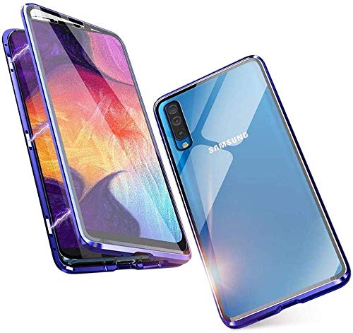 CHENYING Cover per Samsung Galaxy A7 2018, Custodia Magnetica Adsorbimento Tecnologia Bumper in Metallo Ultra Sottile Protezione a 360 Gradi Posteriore in Trasparente Vetro Temperato Indietro,Blu