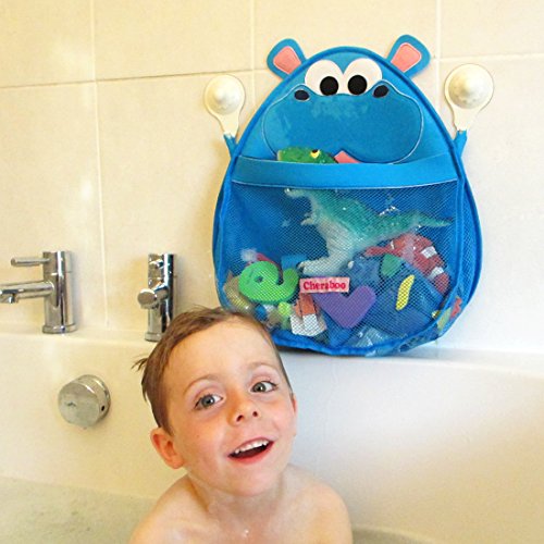 CHERABOO Hurley Hippo, Contenitore da Bagno per i Giocattoli, a Forma di Ippopotamo. Colore: Blu