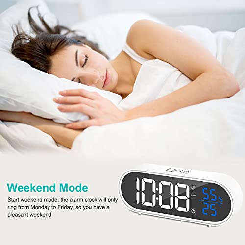 【Doppio allarme & funzione snooze facile da usare 】 L'orologio da comodino dispone di due allarmi e è possibile impostare 2 allarmi in un giorno per pianificare il tempo di conseguenza. Una semplice pressione sul pulsante "SNOOZE/LIGHT" sulla parte superiore dell'orologio consente un tempo aggiuntivo per godersi le mattine in cui hai bisogno di Zzzz aggiuntivi. Inoltre, è possibile impostare la modalità giorno della settimana, che suona solo dal lunedì al venerdì