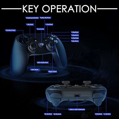 CHEREEKI Controller per Nintendo Switch, Controller Bluetooth Wireless con Doppio Turbo Vibrazione Supporta Funzione Gyro Axis (Grigio Nero) (Blu)