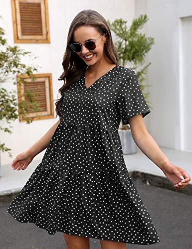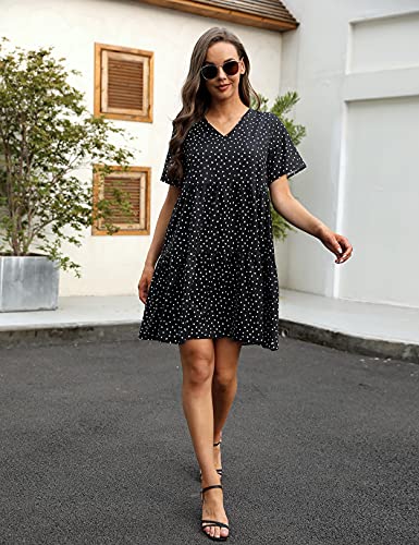 CHERFLY Vestito Foderato Donna Estivo Casual Abito Allentato Scollo V Manica Corta (Nero a Pois,M)