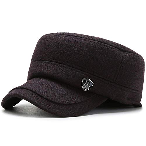 CHERISH Cappello da baseball con visiera calda da uomo in lana con cappello piatto da baseball con visiera pieghevole Earflap Army Cap, Marrone scuro, Taglia unica