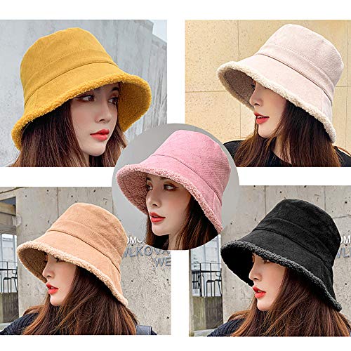 CHERISH Cappello da donna a secchiello, cappello da pescatore in lana invernale reversibile carino caldo cappello da bacino stile orsacchiotto, Beige, Taglia unica