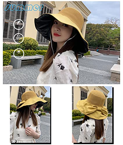 CHERISH Cappello da donna a tesa larga, cappello da sole impermeabile, protezione UV da spiaggia, cappello pieghevole floppy, con fiocco decorativo, Giallo, Taglia unica