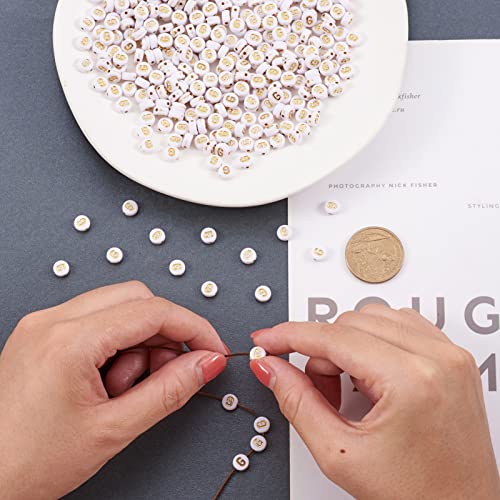 Cheriswelry 360pcs 7mm Piatto Rotondo Acrilico Lettera G Allentato Perline Distanziatore Charms Oro Bianco per Gioielli Braccialetto Fare