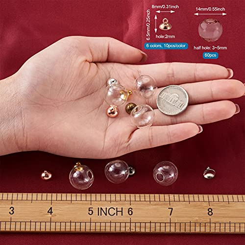 Cheriswelry - Set di 120 mini ciondoli a sfera in vetro trasparente vuoto, a forma di globo con fiala vuota, con tappi per gioielli, orecchini (8 mm/14 mm)