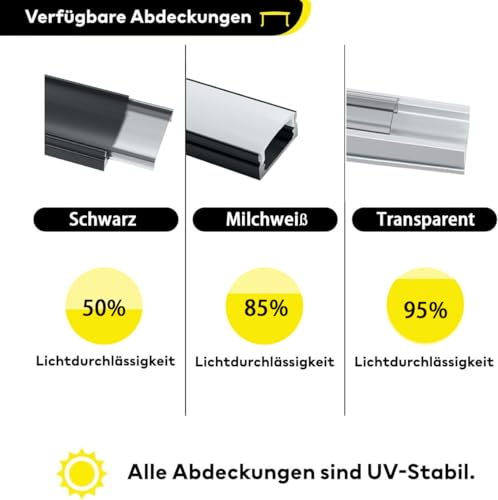 Protezione perfetta per strisce LED: il profilo in alluminio è un solido canale in alluminio estruso a forma di U per una migliore dissipazione del calore, ma protegge anche i LED dal contatto con la polvere. Adatto per balconi, soggiorno, camera da letto, armadio, cucina e altri luoghi.