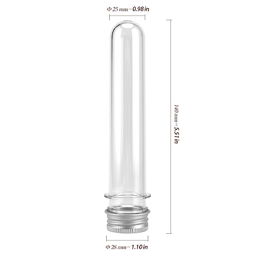 Informazioni sulle dimensioni: le provette in plastica con tappo a vite hanno una dimensione di 25 x 140 mm con un diametro di 28 mm e una capacità di 40 ml. Questo set di 40 provette è perfetto per voi da usare.