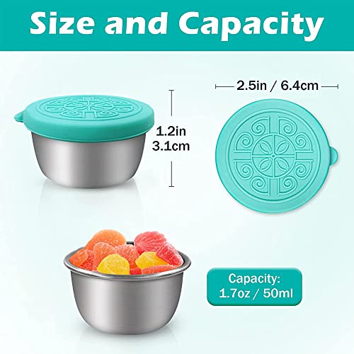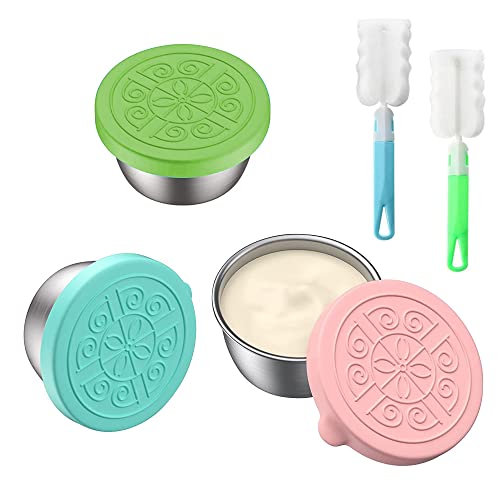 CHEVVY Set di 3 Mini Contenitore Riutilizzabili 50ML Contenitore per Salsa in Acciaio Inox Contenitore di Condimento con Spazzola di Pulizia (Blu Verde Rosa)