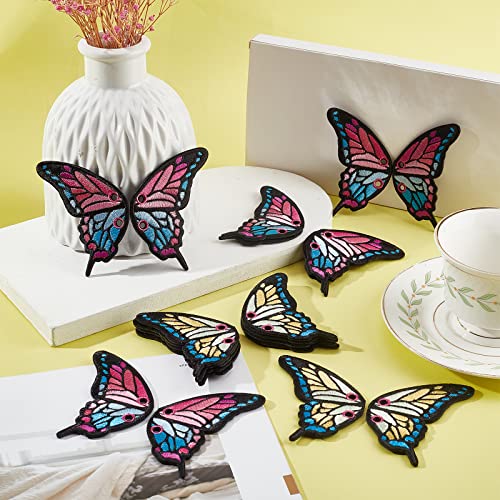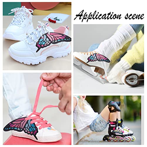 CHGCRAFT 16Pz 4 Style Pattini A Rotelle Charm Farfalla Lacci delle Scarpe Fascino Computerizzato Ricamo Tessuto Farfalla Ala Scarpa Charm Decorazione per Pattini A Rotelle Scarpe 86x50x2mm