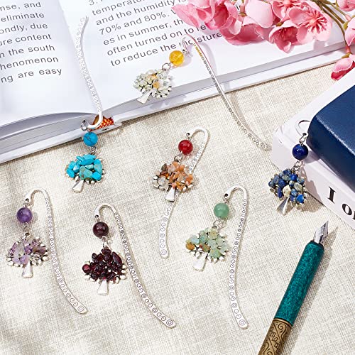 CHGCRAFT 7Pcs 7 Colori Segnalibro In Metallo con Pietra Preziosa Ciondolo Albero Segnalibri In Metallo Accessori di Lettura per Bambini Insegnanti Studente Topo di Biblioteca Regalo