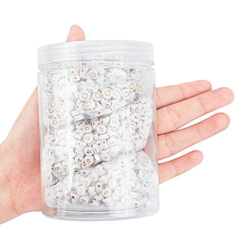 CHGCRAFT Circa 1720 pz Perline Acriliche Bianche Miste Perline Piatte Rotonde con Cuore E Alfabeto E Numero per Creazione di Braccialetti con Collana di Gioielli Fai da Te