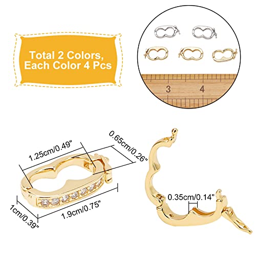 CHGCRAFT 8 Pz 2 Colori Brass Enhancer Shortener Fermaglio intercambiabile Bail Clasp Peanut Pearl k Chiusura Connettore con Strass per 0.39 inch (10mm) Pearl Gemstone Bead Collana Gioielli Making