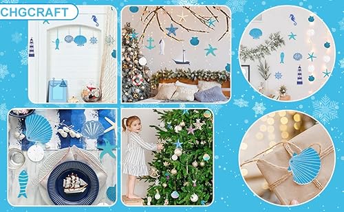 CHGCRAFT 34 pz 16 Stile Legno Nautico Decorazioni Appese Mini Beach Marine Ornament Set Beach Ornamenti da Parete Costiera per La Festa Estiva Home Decor, 45.5x44x3mm, Foro: 1.6 mm