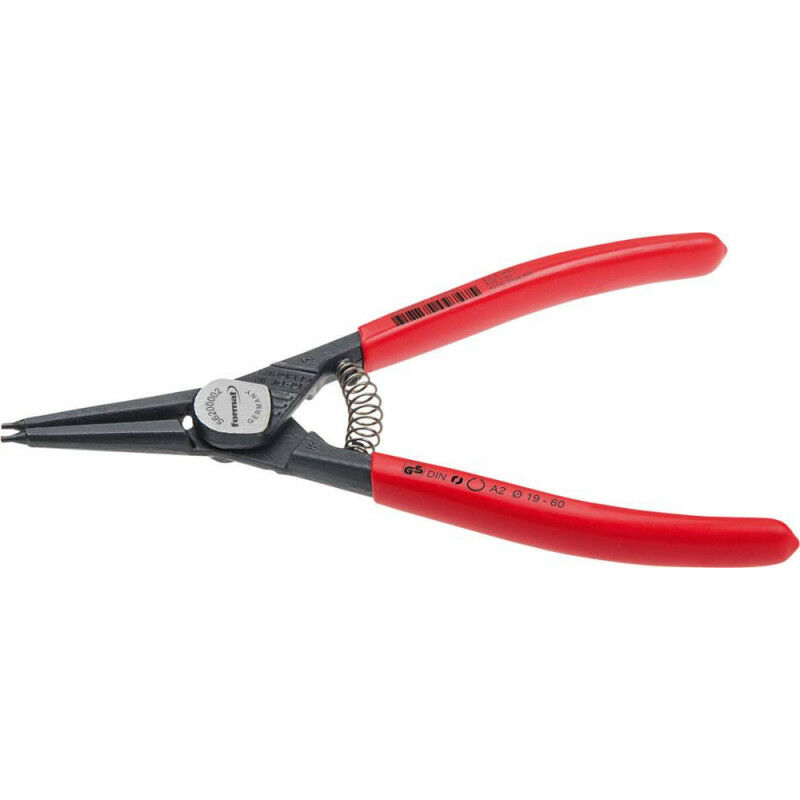 Pinza per anelli esterni. dritta - Testa lucida - Acciaio al cromo vanadio. temperato ad olio - Manici rivestiti in plastica - DIN 5254 A - Antiscivolo. punte robuste - Per il montaggio di anelli esterni e l'apertura di anelli a scatto