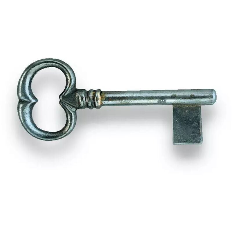 Chiave per porta interna in ferro gambo mm.54, imgombro mm.32x85. Finitura sp sherardise patine' (ferro grezzo spazzolato).