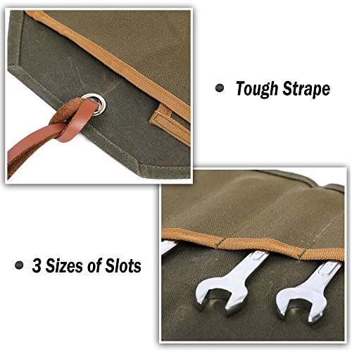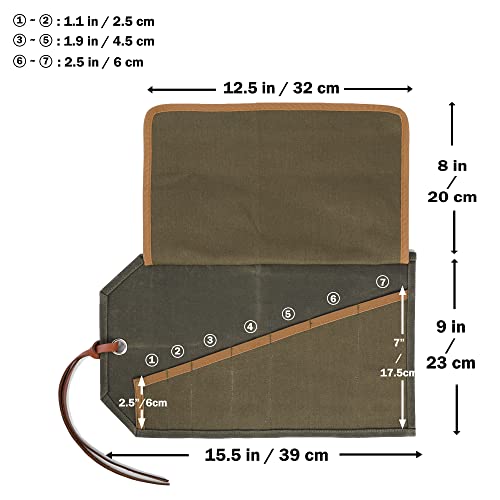 Chiave arrotolabile, multiuso durevole chiave e borsa da appendere per attrezzi, 7 slot e corda per cravatta, porta attrezzi in tela cerata da 16 once, verde militare