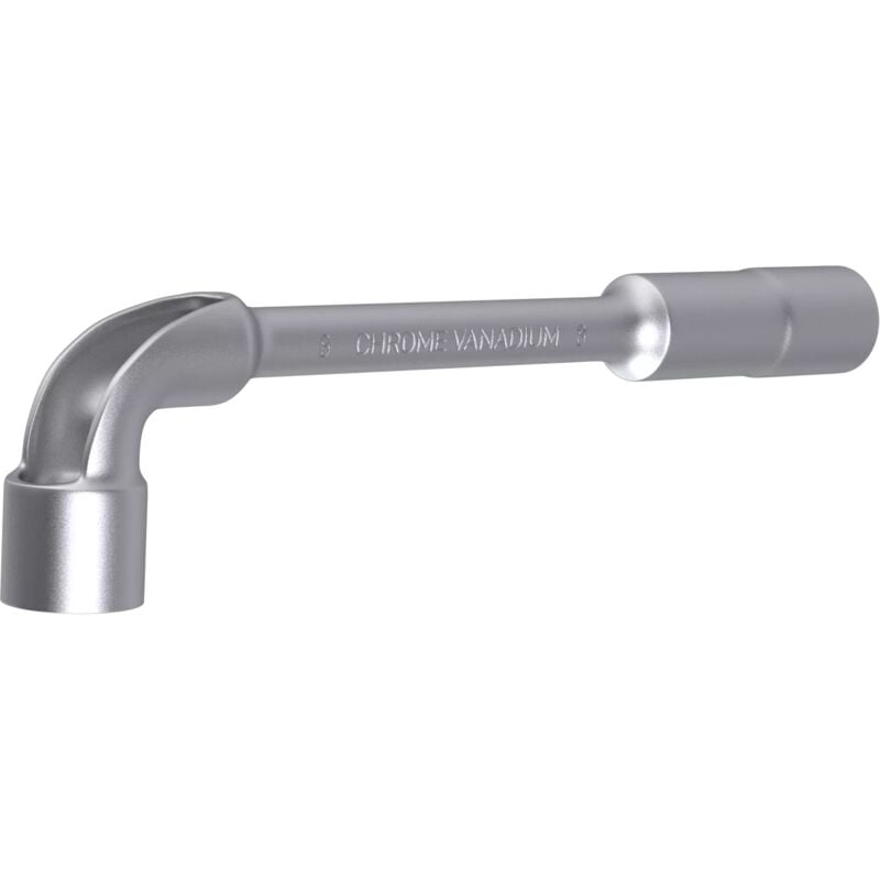 La chiave ha due bussole: una a 6 punte (parte diritta) e una a 12 punte (parte piegata). La parte piegata con il cappuccio consente di svitare o serrare viti (dadi) profondamente incastonate situate su lunghi prigionieri. La parte diritta consente di raggiungere luoghi difficili da raggiungere. Una chiave a tubo forata è uno strumento versatile, quindi sarà utile in ogni buon servizio di auto, servizio di macchine agricole e servizio di camion. Maglia piatta