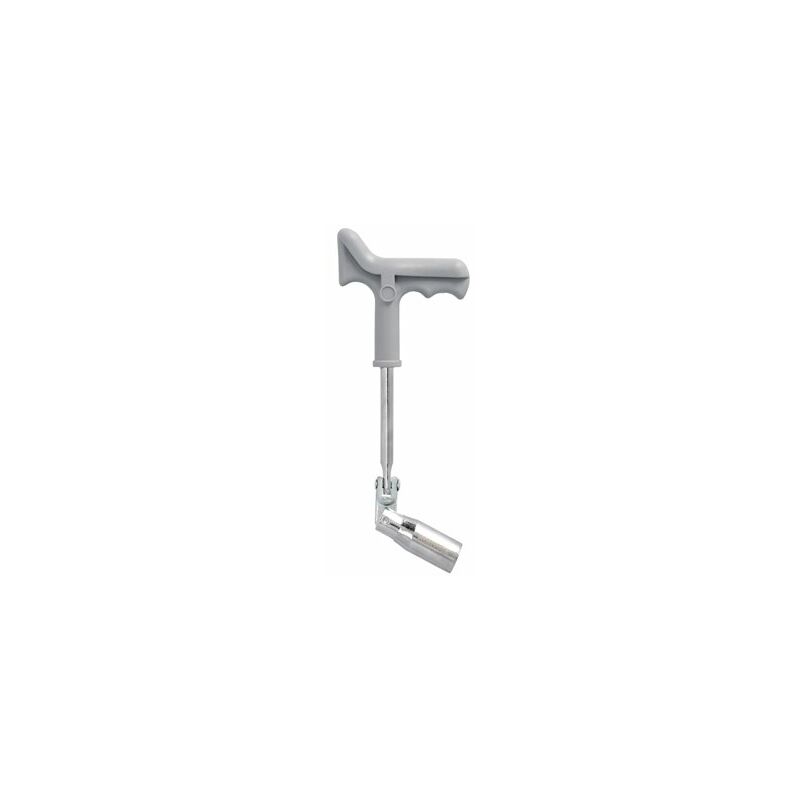 Chiave per candele snodata - Per candele da 21 mm. - Chiave snodata, puoi stringere/allentare la candela da diverse angolazioni. - Con impugnatura a T. - Impugnatura in plastica dalla forma ergonomica, che facilita la trasmissione della forza . - Ideale per lavori meccanici, officine, ecc.