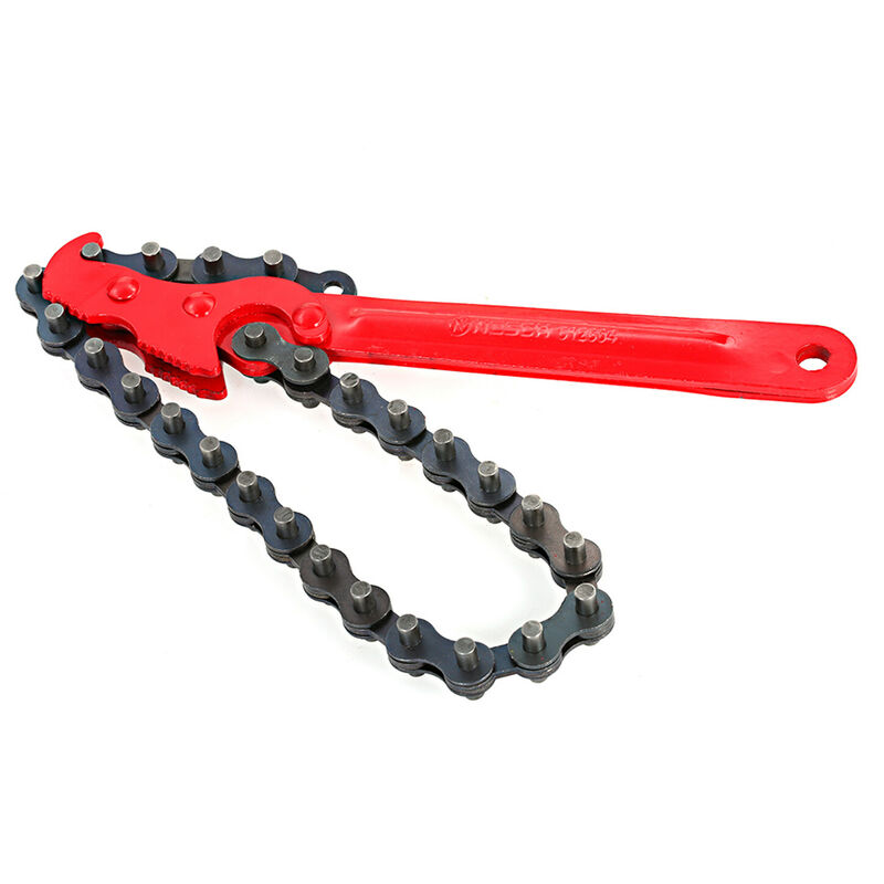 Specifiche: Materiale: acciaio al carbonio Manico: 22 cm / 9 pollici Lunghezza catena: 410 mm / 16,1 pollici< br /> Sezione: 26 Peso dell'articolo: 408 g / 14,4 once Peso della confezione: 415 g / 14,6 once < br />Dimensione confezione: 280*100*20 mm / 11,0*3,9*0,8 pollici Pacchetto elenco: 1 * Chiave a catena