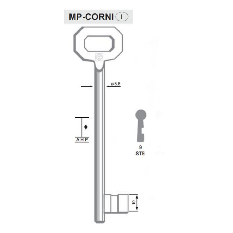 Chiave cifrata per serratura applicare cantina leggera corni 9STB
