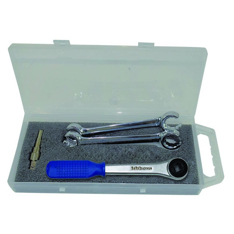 CON CRICCO E CHIAVI APERTE PER COLLETTORI Con chiave a scalino da 3/8 - 1 cricco e chiavi aperte: 24 x 27 e 26 x 30.