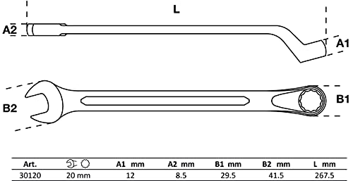 BGS chiave combinata - Anello, anello lato a gomito, 20 mm, 1 pezzi, 30120
