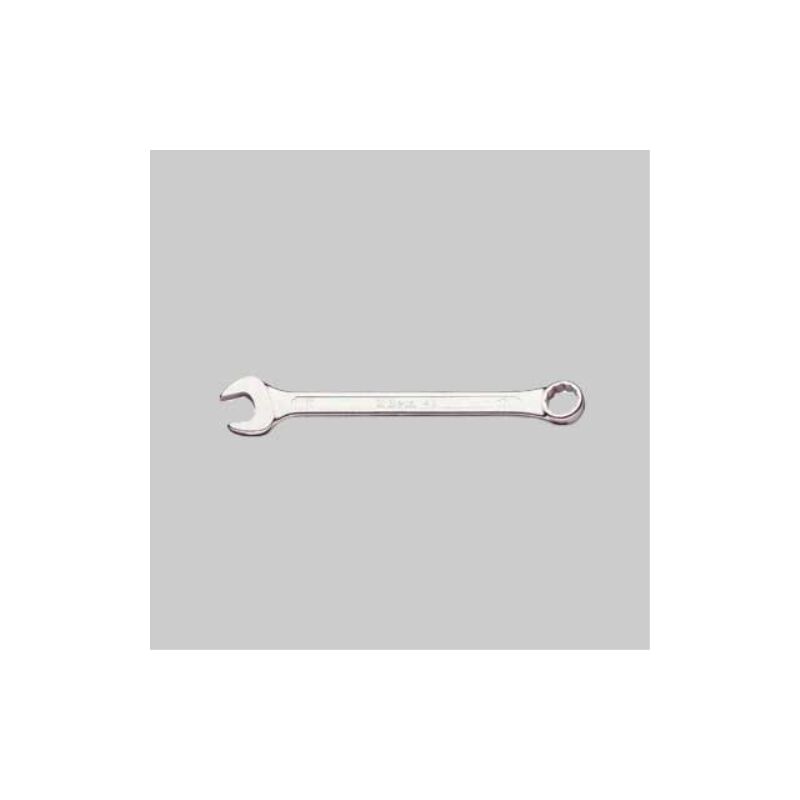 In acciaio al cromo vanadio. Finitura cromata. Testa ad anello inclinata di 15ø. A norma DIN 3113 UNI-ISO 7738. Chiave combinata art. 42 beta 18x18 mm BETA Utensileria beta
