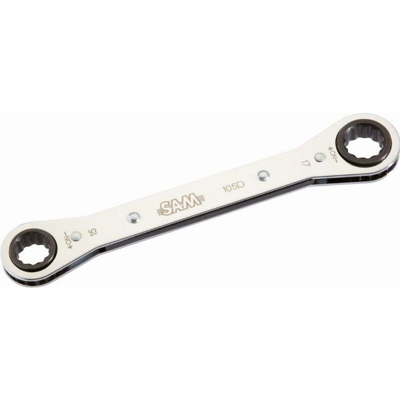 Dettagli: Chiave con invertitore di serraggio/sgancio posizionato in modo ideale per consentire l'inversione con una sola mano. Finitura satinata. Cricchetto 20 dentiTeste poligonali a 12 lati. Caratteristiche: A1xA2 (mm): 15 x 17 D1xD2 (mm): 33 x 36 C (mm): 12,7 L (mm): 206 Peso (g): 225 A1xA2 (mm): 15 x 17 D1xD2 (mm): 33 x 36 C (mm): 12,7 L (mm): 206 Poids (g): 225