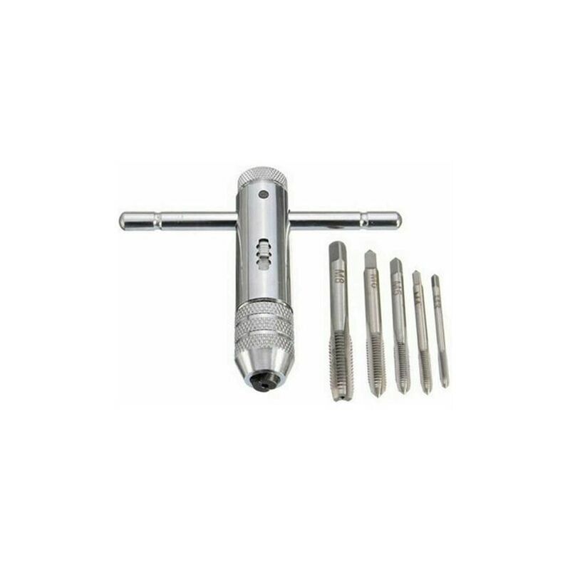 Finitura cromata per la massima durata. Dimensioni maschiatura: M3-0.5, M4-0.7, M5-0.8, M6-1.0, M8-1.25. Utilizzo: per rubinetti M3-M8. La testa è completamente regolabile per adattarsi a tutti i rubinetti di dimensioni metriche e lo strumento è completamente reversibile tramite l'interruttore a cricchetto. L'impugnatura è regolabile e rimovibile, ideale per evitare ostacoli nelle vicinanze e facilitare l'infilatura in zone difficili Giramaschi a cricchetto e con impugnatura a T Scatola ingranaggi a tre posizioni per l'azione Cricchetto rapido ed efficiente, impugnatura scorrevole con rubinetto a molla, può essere estesa in entrambe le direzioni per una maggiore resistenza Chiave per maschi metrica M3-M8 (corpo lungo 86 mm x larghezza impugnatura 100 mm) per passare facilmente dalla mano sinistra alla mano destra o bloccata per l'uso senza cricchetto Progettato per l'uso con maschi e può essere utilizzato anche con maschi a sinistra, alesatori, estrattori di viti e altri utensili con