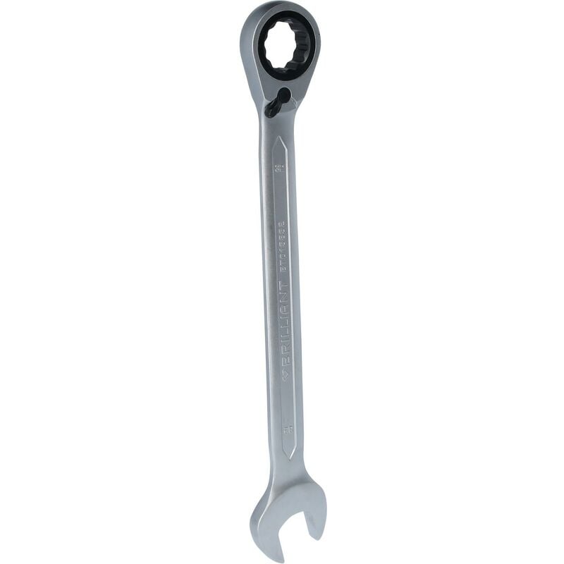 Fabbricata conformemente a DIN 3113 A dentatura fine con 72 denti Angolo di rotazione posteriore 5° Reversibile Con cromatura opaca Cromo vanadio Apertura della chiave 32 mm La chiave a cricco BT013832 di BRILLIANT TOOLS viene fabbricata secondo DIN 3113. La chiave poligonale metrica con funzione di cricco presenta una dentatura fine con 72 denti e ha un angolo di rotazione posteriore di 5°. La chiave ha una lunghezza totale di 42 cm e una testa a cricco reversibile che è angolata di 15°. Anche la posizione della bocca è angolata di 15°. Un'inversione della funzione di cricco (destra/sinistra) avviene in modo confortevole grazie al movimento del commutatore. La superficie è cromata opaca, pertanto si tiene particolarmente bene in mano e consente una trasmissione ottimale della forza. LA NOSTRA QUALITÀ: BRILLANTE I NOSTRI PREZZI: SMART Ogni utensile cela più di un quarto di secolo di esperienza dei nostri tecnici. La qualità senza compromessi dei nostri eccellenti utensili