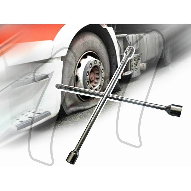 CHIAVE A CROCE PER CAMION QUADRO MASCHIO 3/4 MISURE 24/27/30 MM PER GOMME RUOTE E CAMION Descrizione prodotto Caratteristiche tecniche Chiave a croce universale per automezzi e camion, per una facile e veloce sostituzione delle ruote. - Misura Bussole (mm): 24-27-32 - Misura quadro da 3/4"
