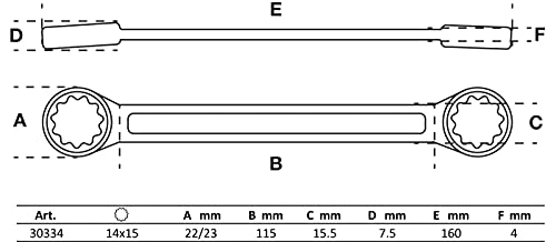 BGS chiave a doppio anello piatto 14 x 15 mm, 1 pezzo, Adattatore e invertitore
