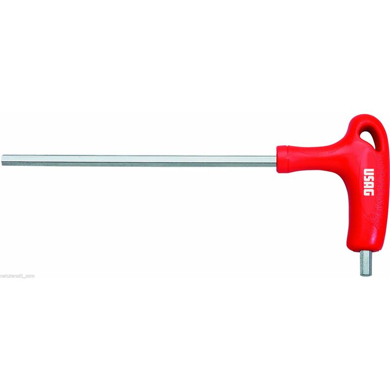 CHIAVE ESAGONALE A T CON IMPUGNATURA USAG 280H CHIAVI ESAGONALI MASCHIO PIEG. DA Caratteristiche Per viti con esagono incassato Impugnatura ergonomica Lama in acciaio speciale altamente legato al Cromo Vanadio Esecuzione cromata Dettagli famiglia Codice esagono di manovra mm a mm L mm 02800302 2 90 133 02800303 2,5 90 133 02800304 3 90 133 02800305 3,5 90 133 02800306 4 130 183 02800307 4,5 130 183 02800308 5 130 183 02800310 6 175 240 02800311 7 175 240 02800312 8 175 240 02800314 10 175 240 QUALITA' PROFESSIONALE USAG