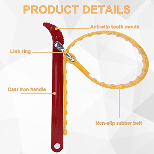 Chiave per cintura multifunzionale: le chiavi a nastro regolabili e i denti anteriori integrati garantiscono una migliore presa. Il materiale in gomma è spesso e durevole, non facile da rompere e la lunghezza può essere regolata a piacere.